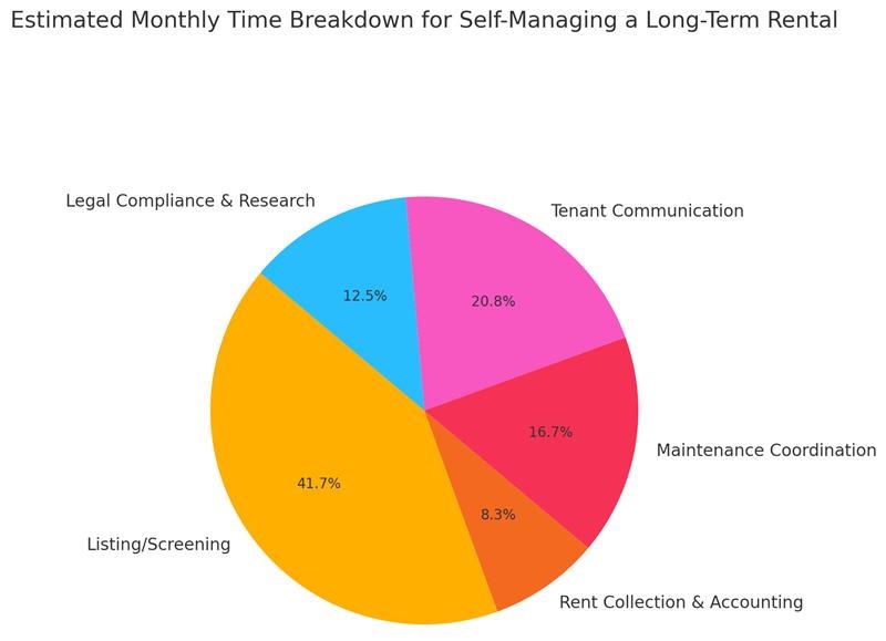 - Listing, showings & screening: ~5–10 hrs (per vacancy cycle)